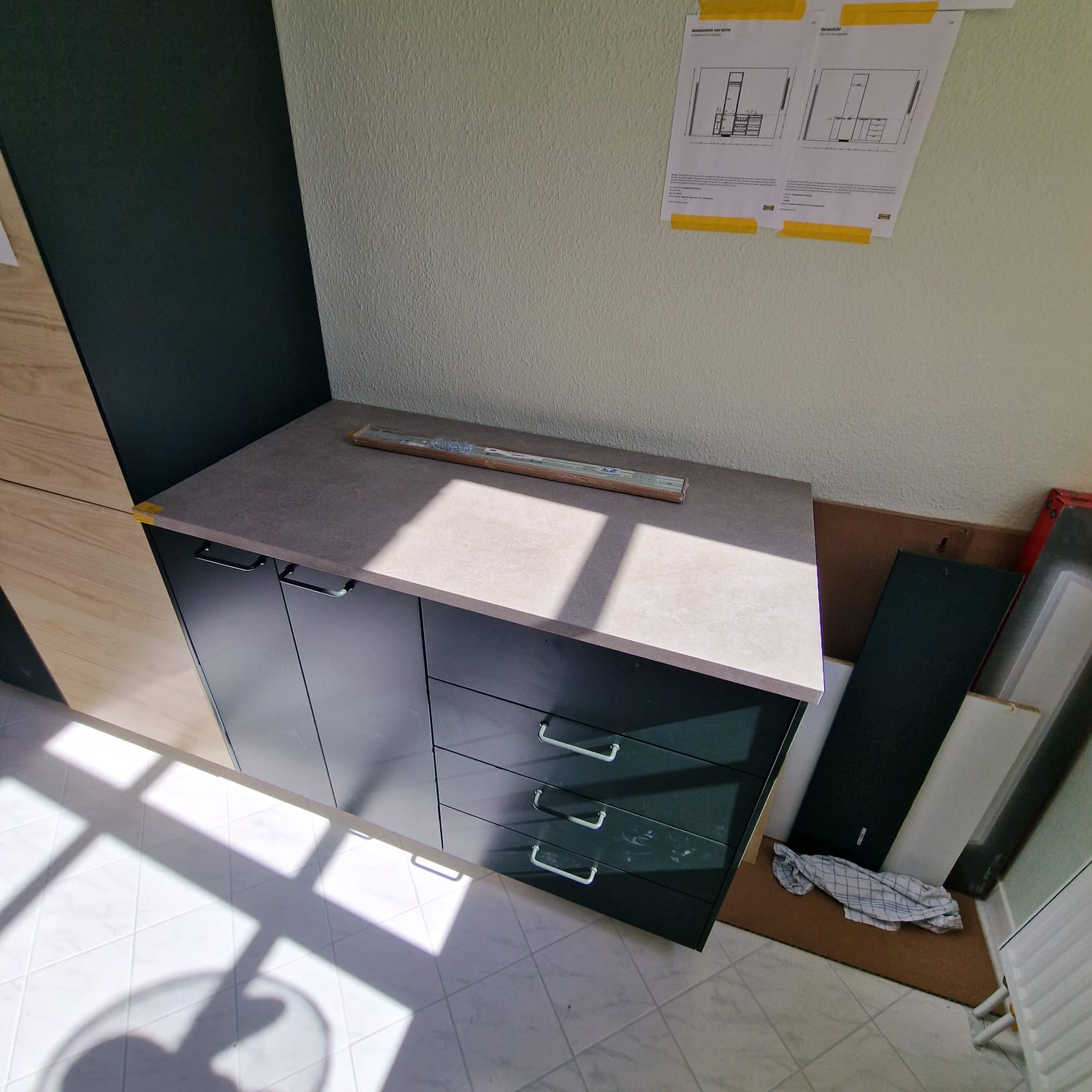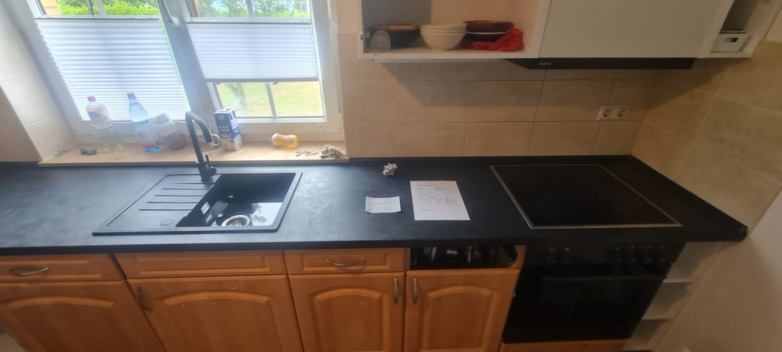 Die Küche hat von unserem Team eine neue Arbeitsplatte bekommen – frischer Look und wieder voll einsatzbereit!